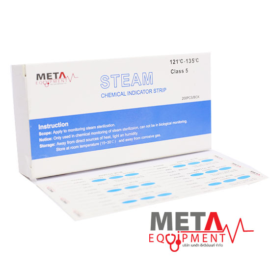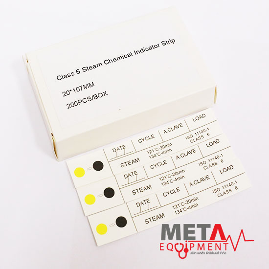 - แผ่นแถบวัด แผ่นตรวจสอบประสิทธิภาพการทำให้ปราศจากเชื้อด้วยไอน้ำ Steam indicator strip Class4 / Class5 / Class6